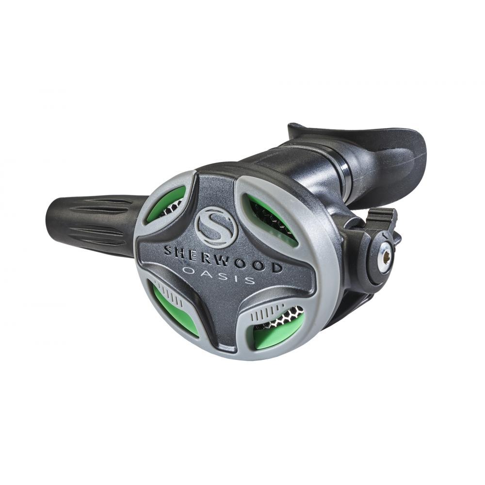The new Sherwood Oasis Pro is a completely new design and ready to provide you comfort and easy breathing in all diving conditions. The Oasis's new 2nd stage proprietary valve design has been tested in the most rigorous conditions and continues to perform extraordinarily well. Both in the laboratory and in conducted testing the Sherwood Oasis has stood up to every test. The proprietary Moisture Retention Vane does an outstanding job capturing exhaled moisture and returns it upon inhalation. No more cotton mouth with this regulator! The larger diaphragm and purge cover and responsive to inhalation provide easy breathing throughout the dive. And the diver operated Venturi control allow the diver to adjust the setting. The Oasis 1st stage is a completely dry and environmentally sealed 1st stage maintains a clean interior. No gels or liquids to seal the Piston 1st stage design.