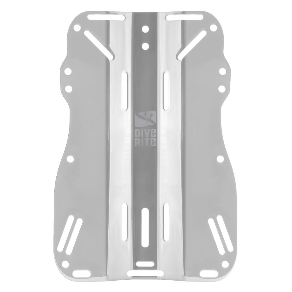 Our laser-cut, CNC deburred and electropolished backplate was designed with rounded corners to prevent pressure points and snagging. Built-in holes for for bungee allow divers to sidemount stage bottles without the need for modification, and slots for cam bands make it easy to carry a single tank with no need for an adapter. At 5.5 pounds, this backplate is perfect for diving with aluminum tanks, thick undergarments or anywhere extra weight is needed.